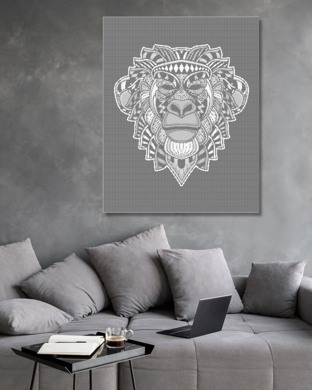 Bodkovanie - ABSTRAKTNÁ OPICA NA ČIERNOM POZADÍ