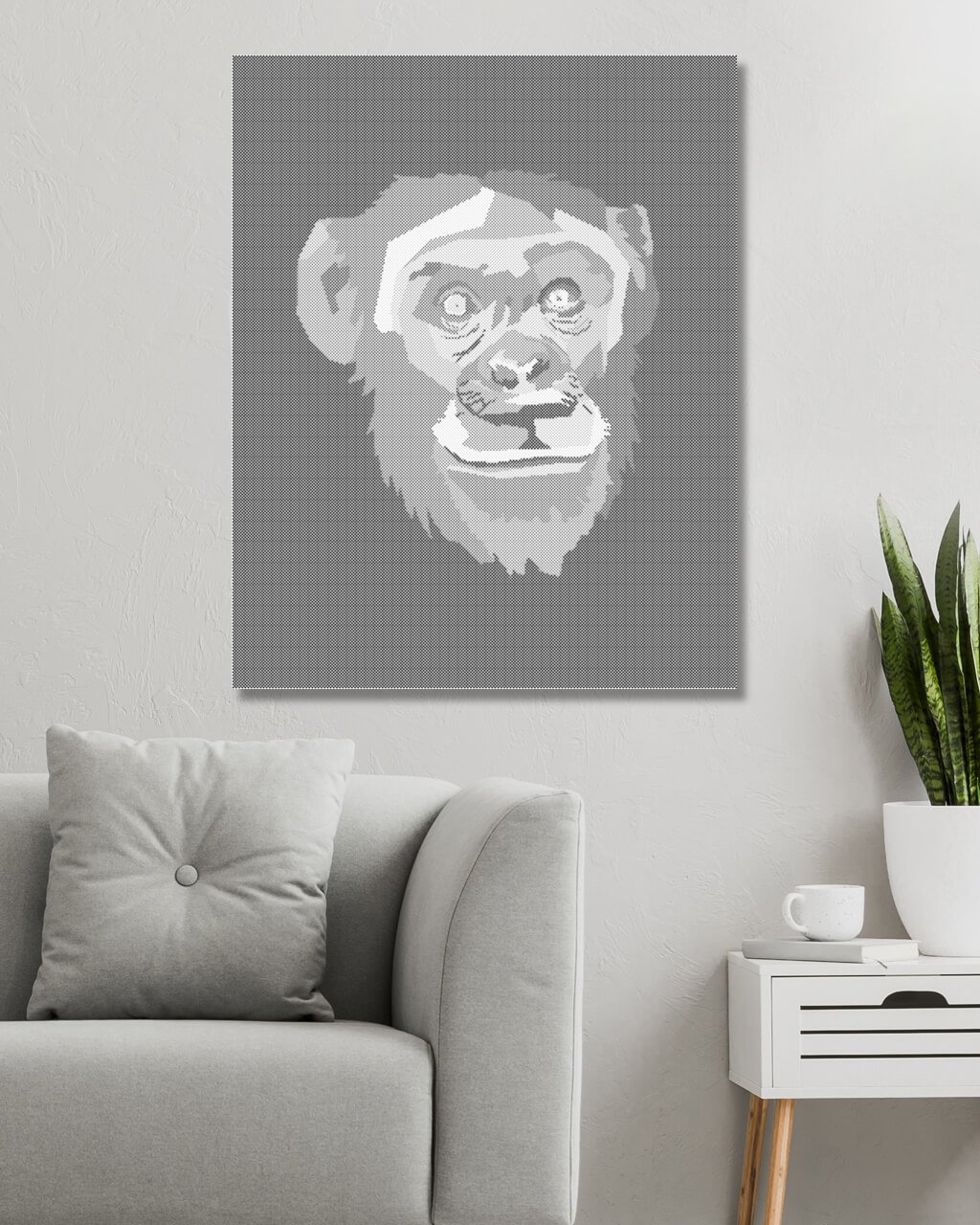 Bodkovanie - ABSTRAKTNÁ POP-ART OPICA NA ČIERNOM POZADIÍ
