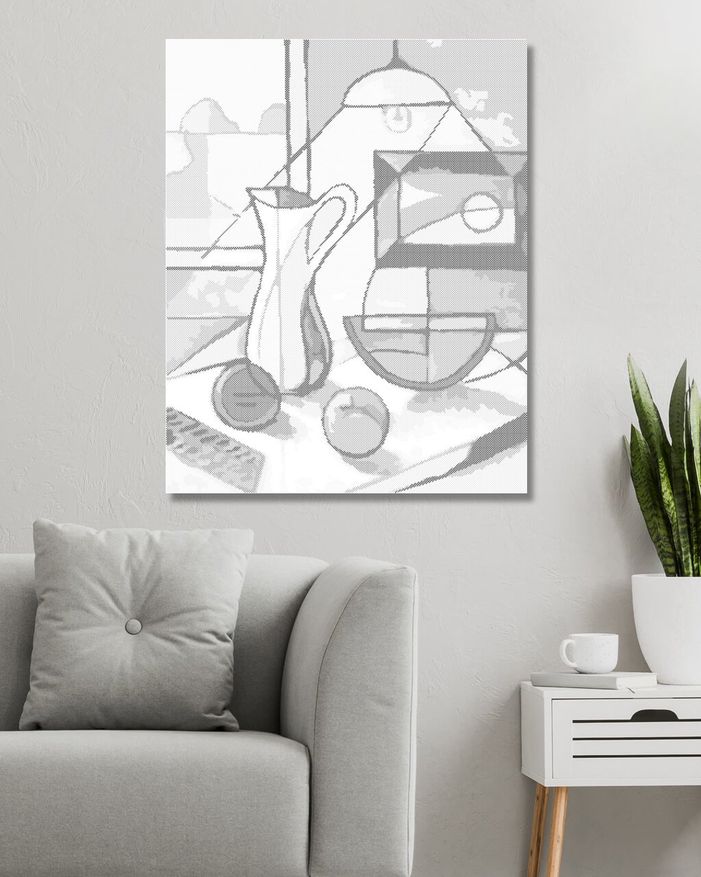 Bodkovanie - ABSTRAKTNÉ ZÁTIŠIE S DŽBÁNOM A OVOCÍM