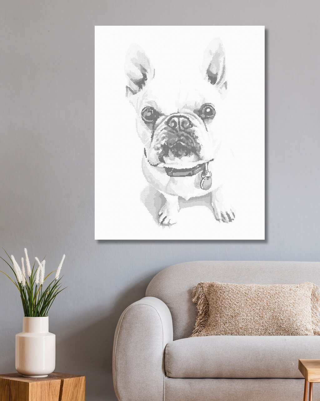 Bodkovanie - BIELY BULDOČEK S MODRÝM OBOJKOM