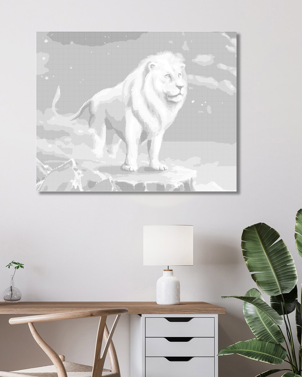 Bodkovanie - BIELÝ LEV S JASNOU MODROU OBLOHOU