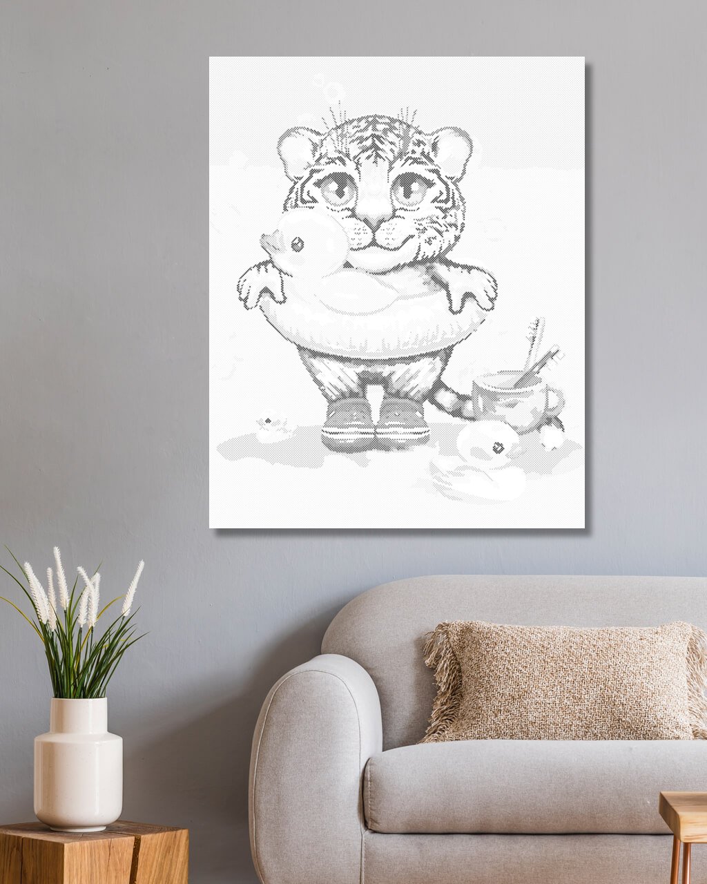 Bodkovanie - BIELY TIGRÍK S KAČKAMI