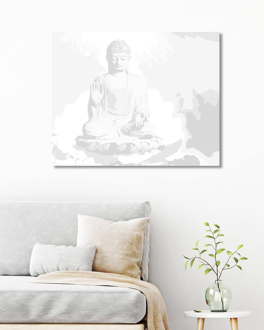 Bodkovanie - BUDDHA V LOTOSE A ZELENÉ POZADIE