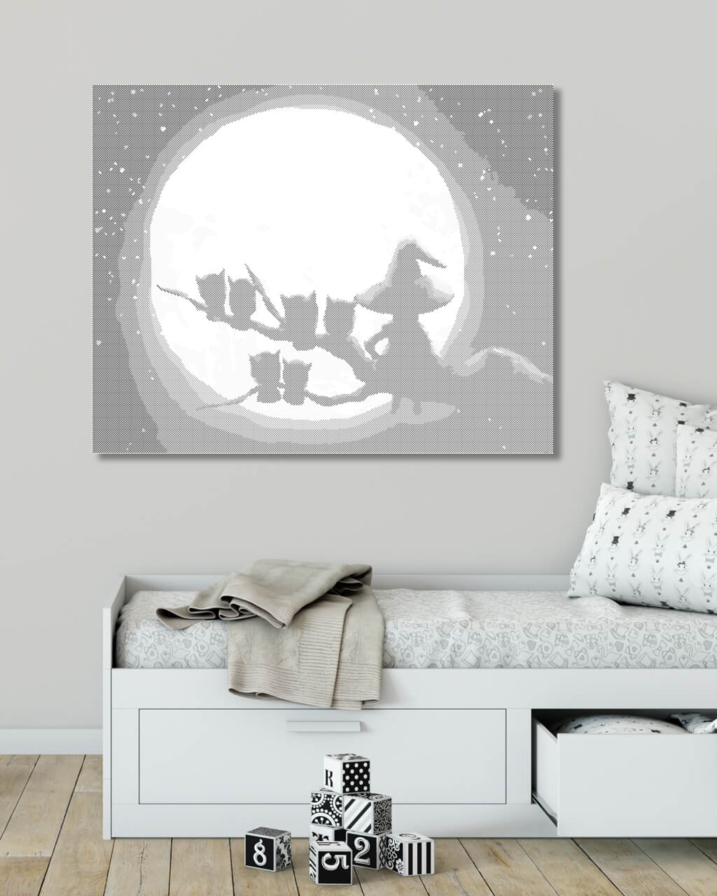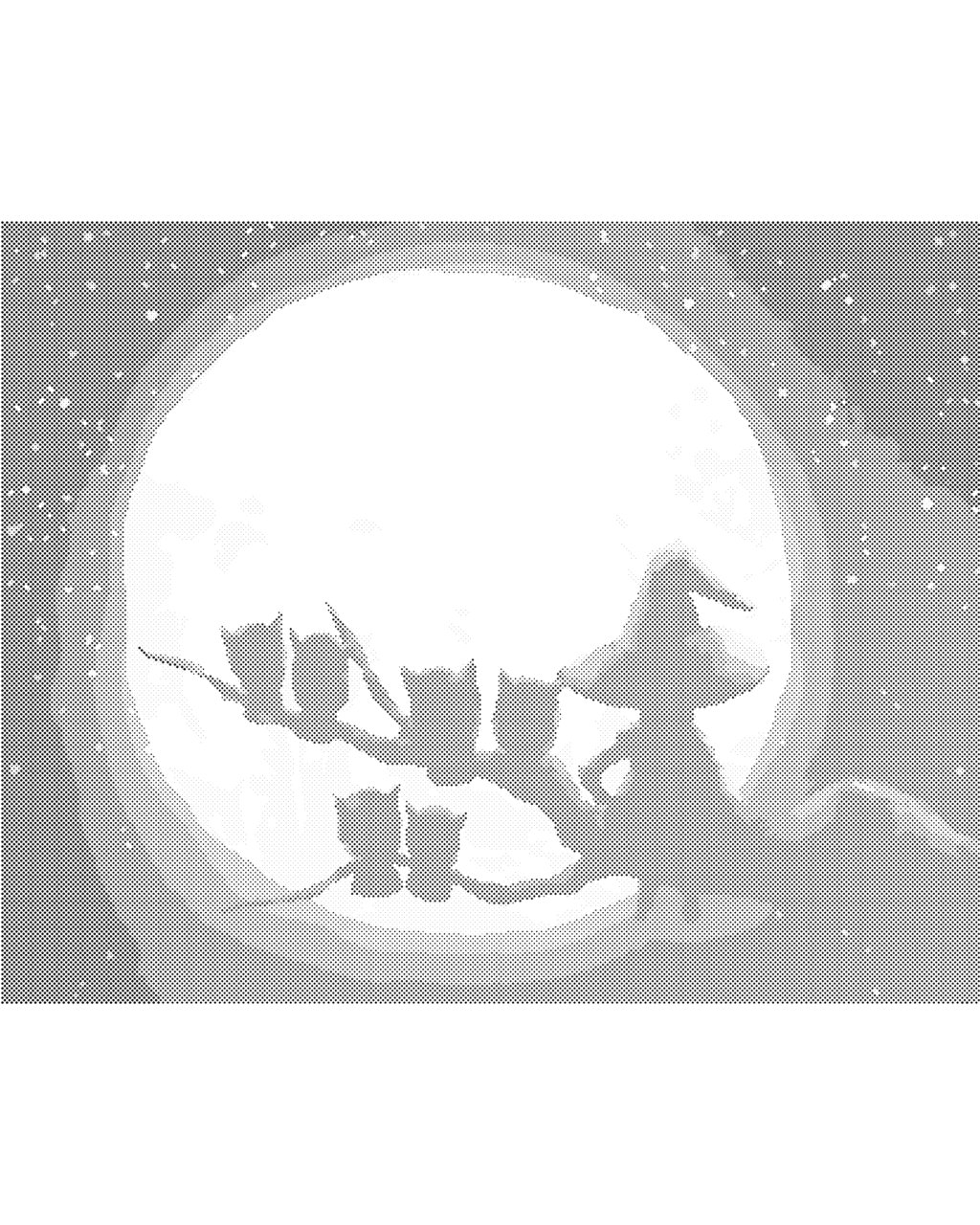 Bodkovanie - ČARODEJNICE A SOVY SEDIACE NAPROTI MESIACU