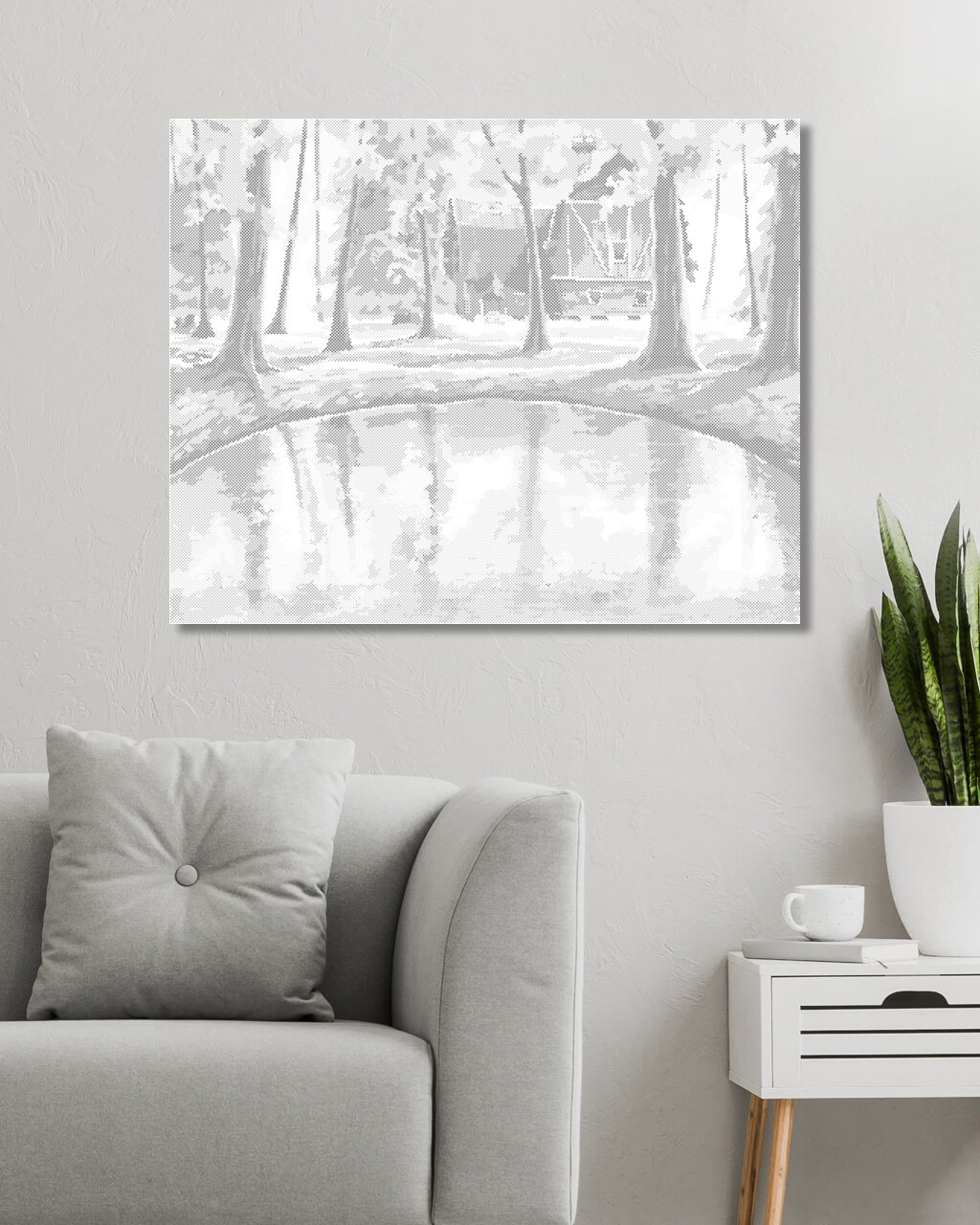 Bodkovanie - ČERVENÝ DOM V LESE S MAGICKÝM JAZEROM