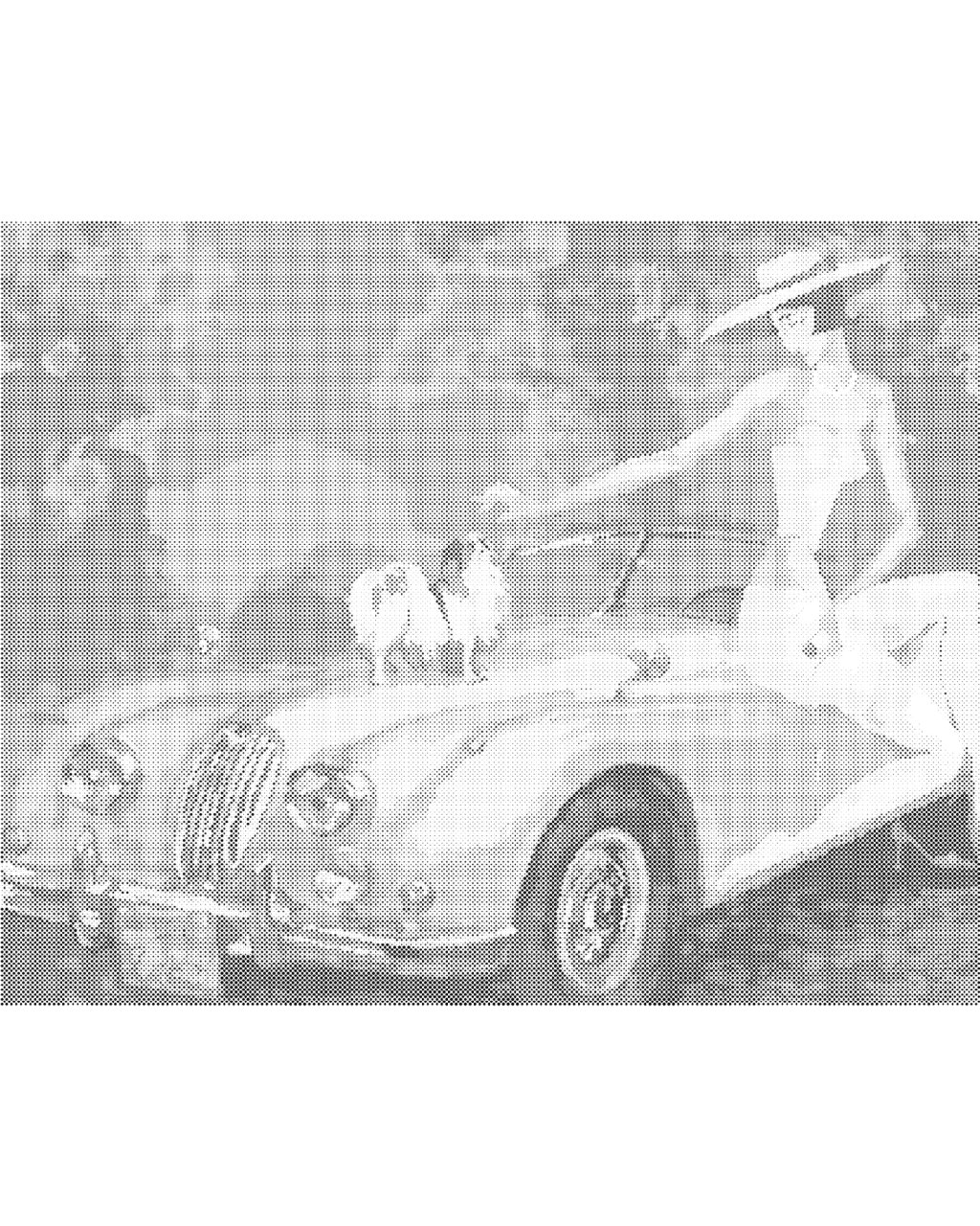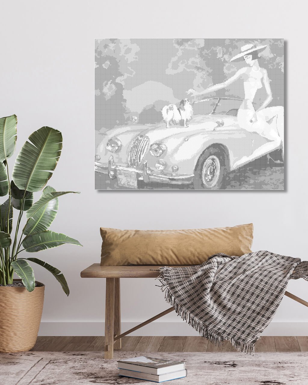 Bodkovanie - DÁMA SO PSOM NA KABRIOLETE
