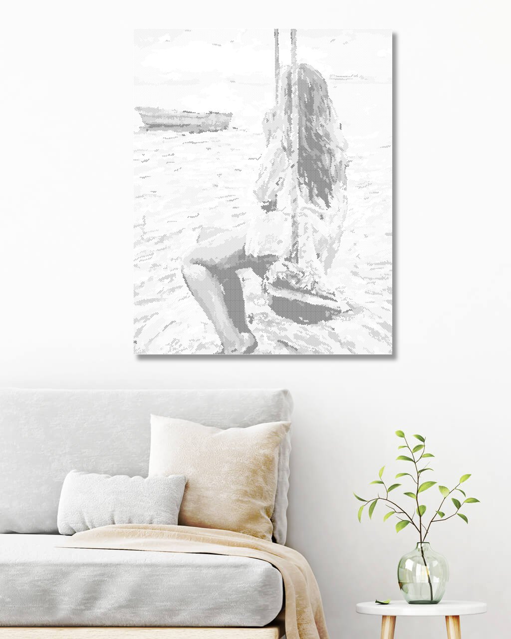 Bodkovanie - DIEVČA NA DREVENEJ HOJDAČKE