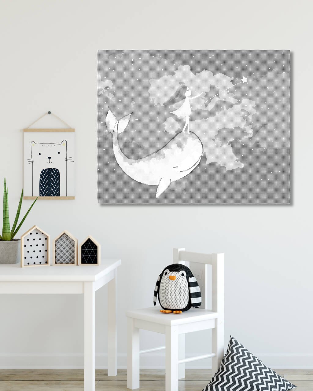 Bodkovanie - DIEVČA S VEĽRYBOU NA NOČNEJ OBLOHE