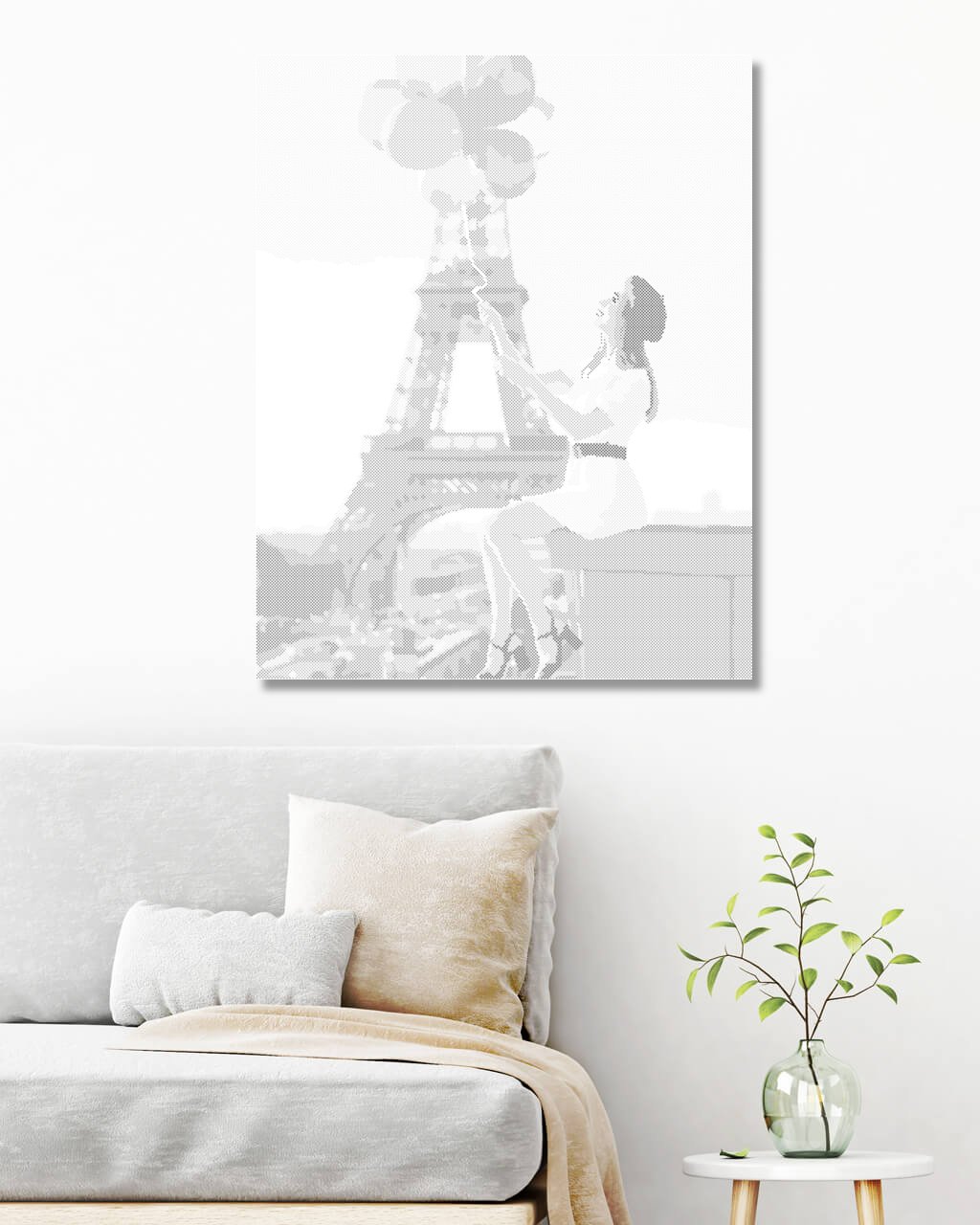 Bodkovanie - EIFFELOVA VEŽA A ŽENA S ČERVENÝMI BALÓNIKMI