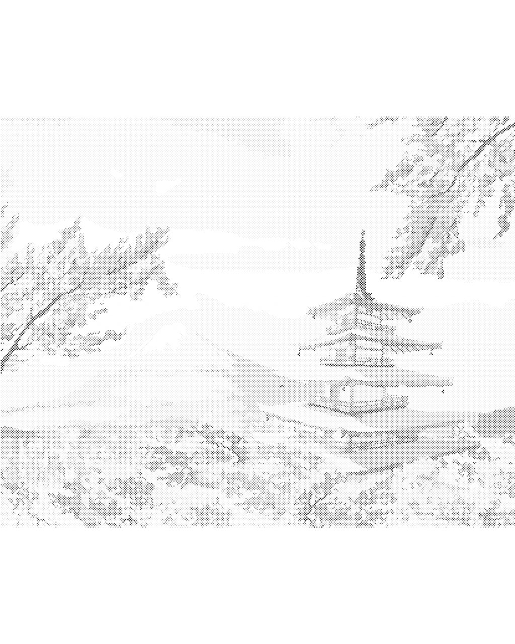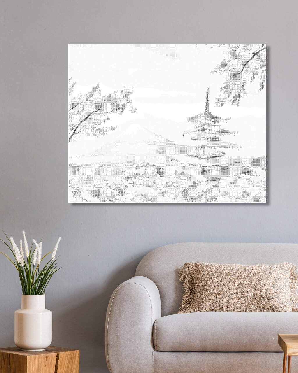 Bodkovanie - JAPONSKO CHRÁM A RUŽOVÉ KVETY