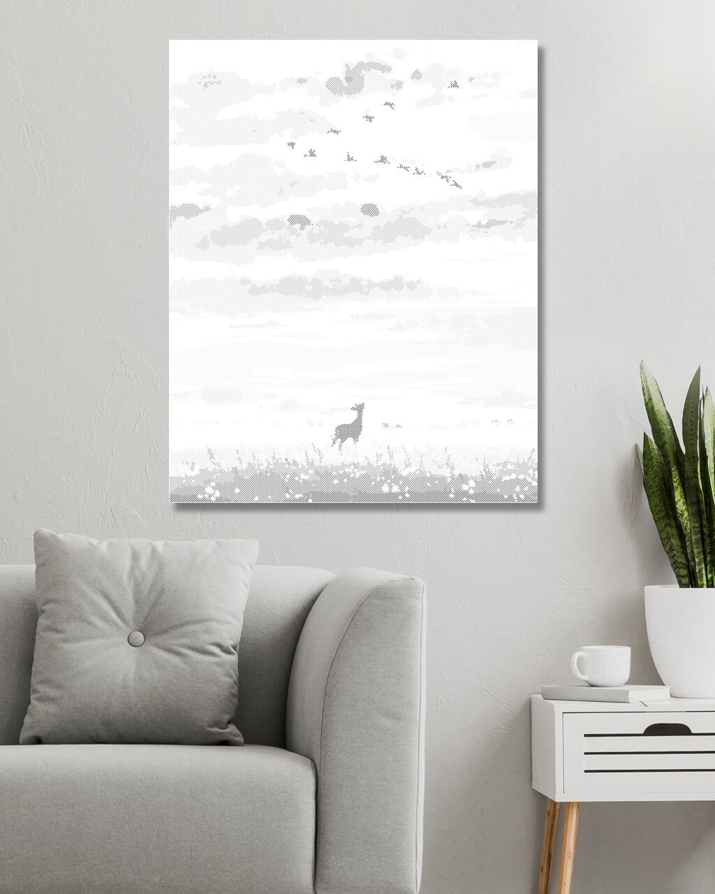 Bodkovanie - JELEŇ V DIVOKOM POLI ZA SÚMRAKU