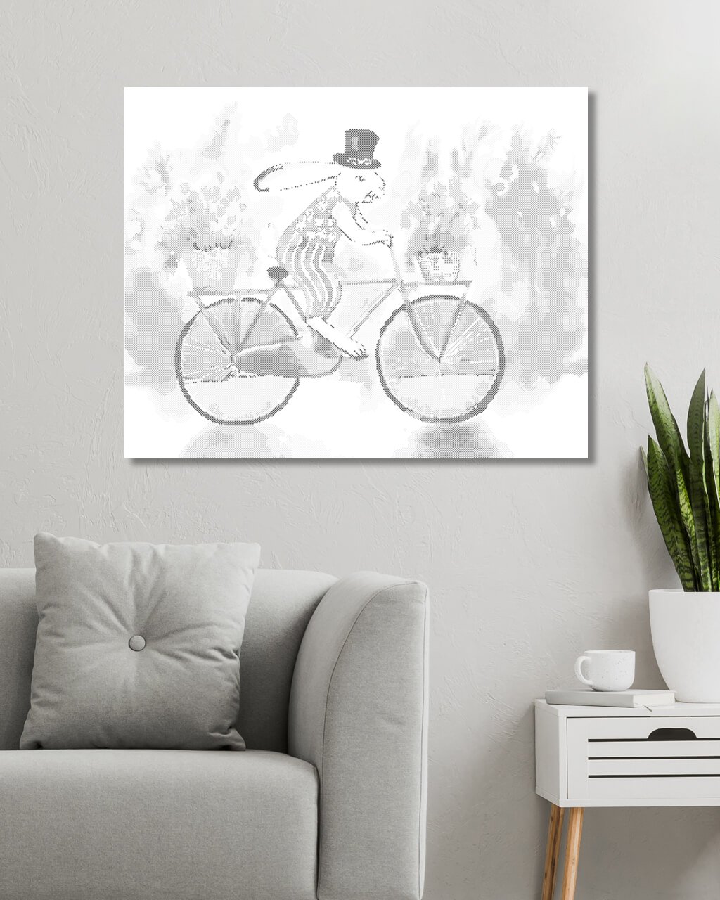 Bodkovanie - KRÁLIK V KLOBÚKU NA BICYKLI