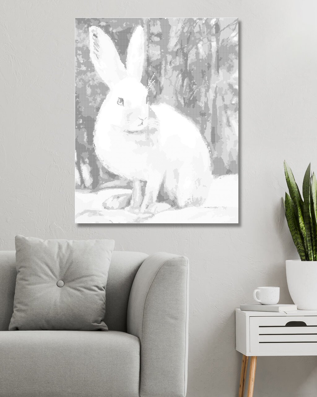 Bodkovanie - KRÁLIK V ZIME PRI LESE