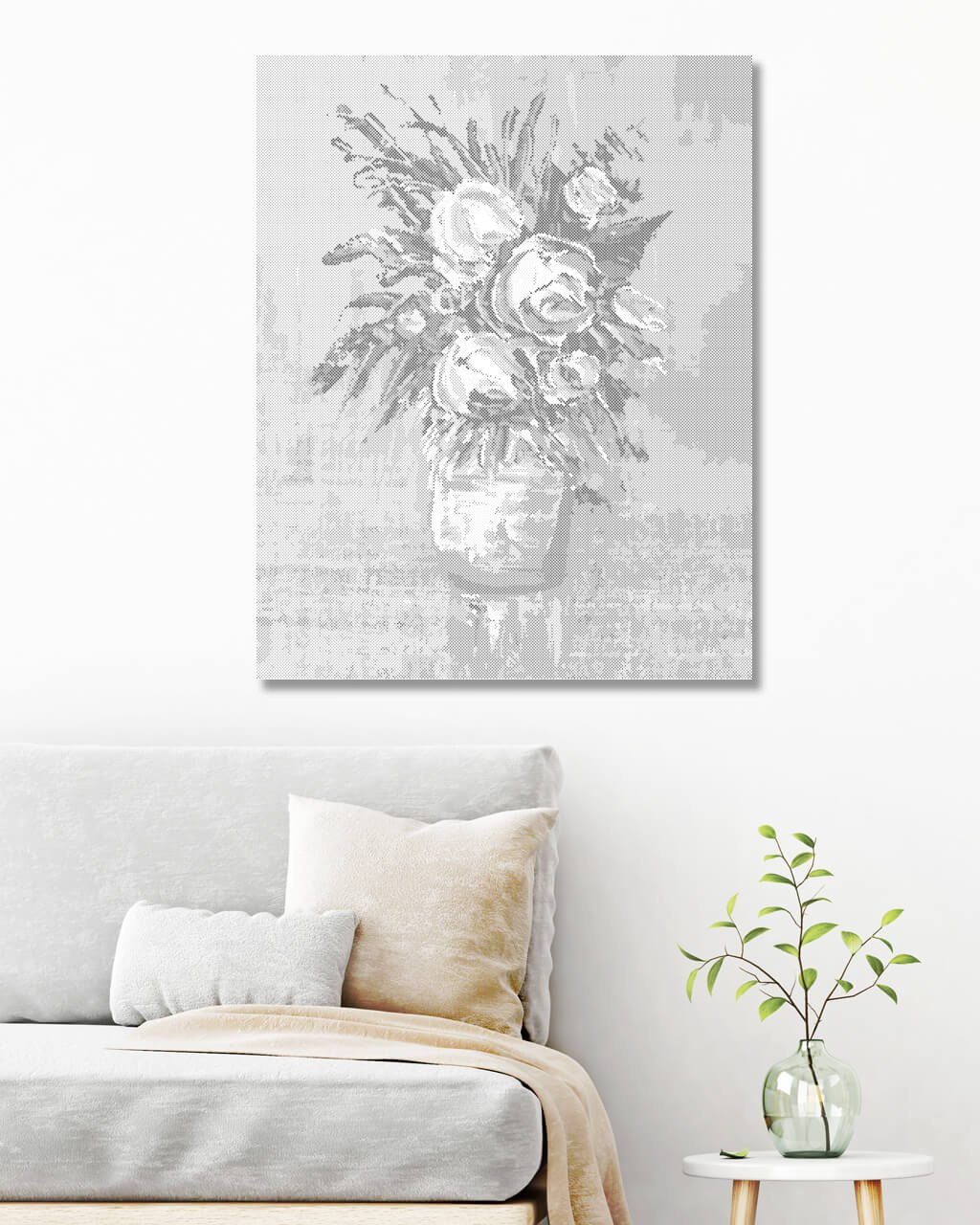 Bodkovanie - KYTICA RUŽÍ NA ČERVENOM POZADIÍ