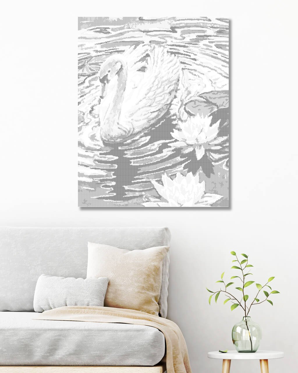 Bodkovanie - LABUŤ S DVOMI LEKNÍNMI