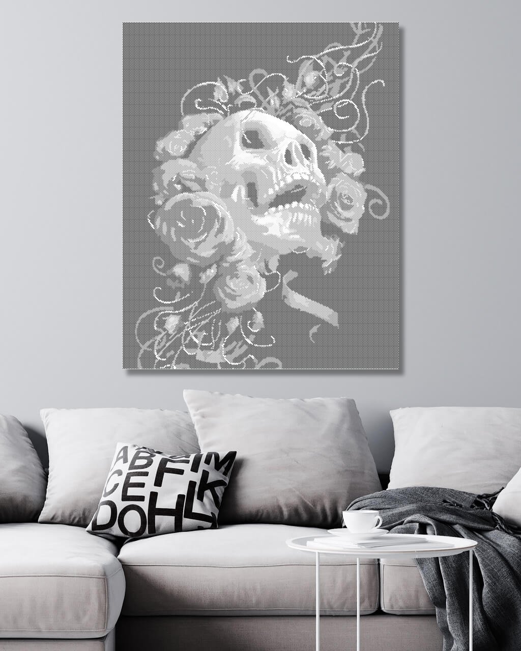 Bodkovanie - LEBKA OVINUTÁ RUŽAMI
