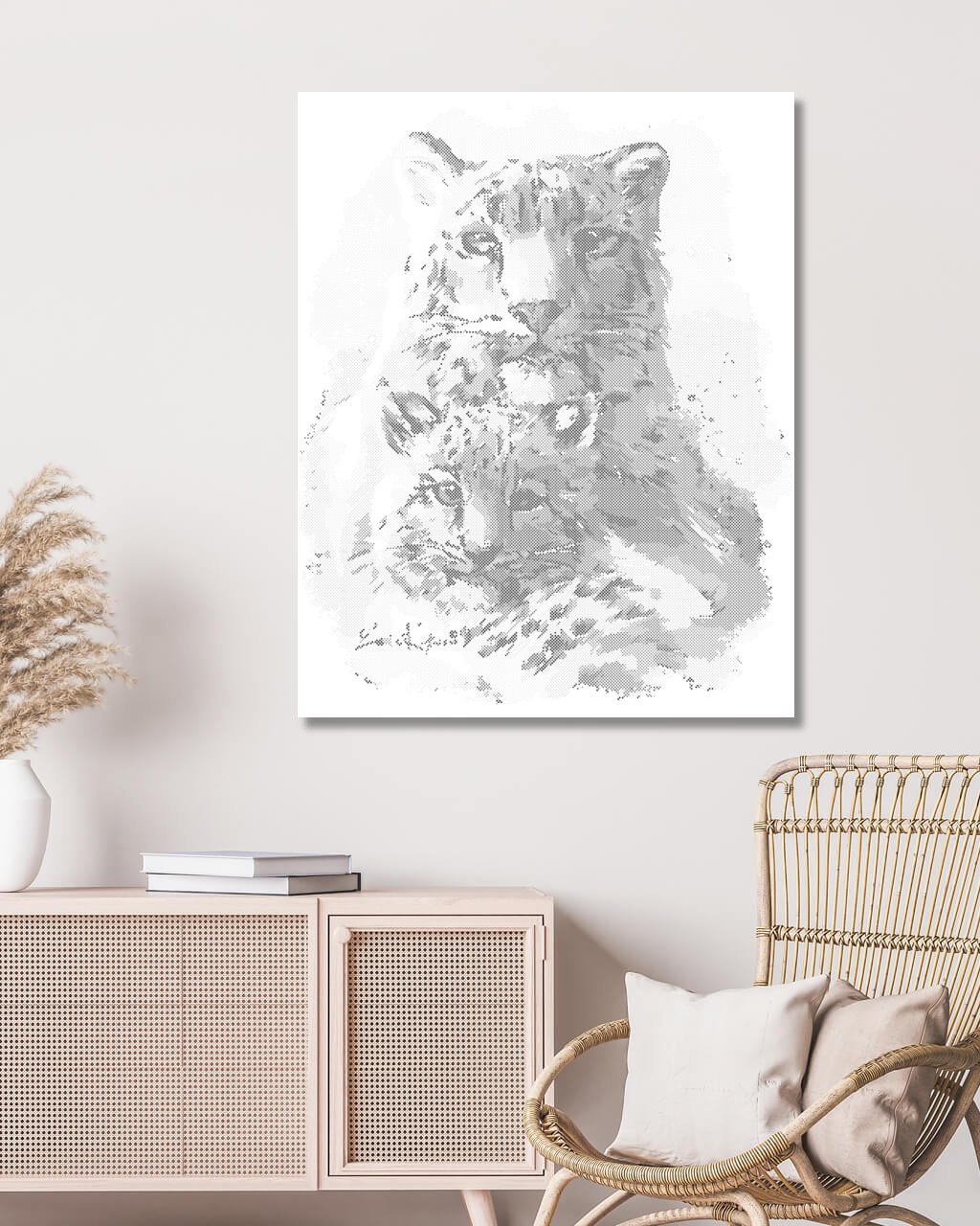 Bodkovanie - LEOPARD SNĚŽNÝ S MLÁĎATKOM