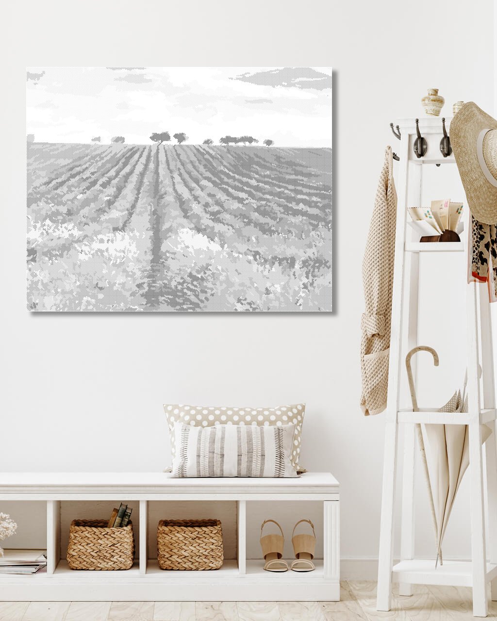 Bodkovanie - LEVANDUĽOVÉ POLE A STROMY V DIAĽKE