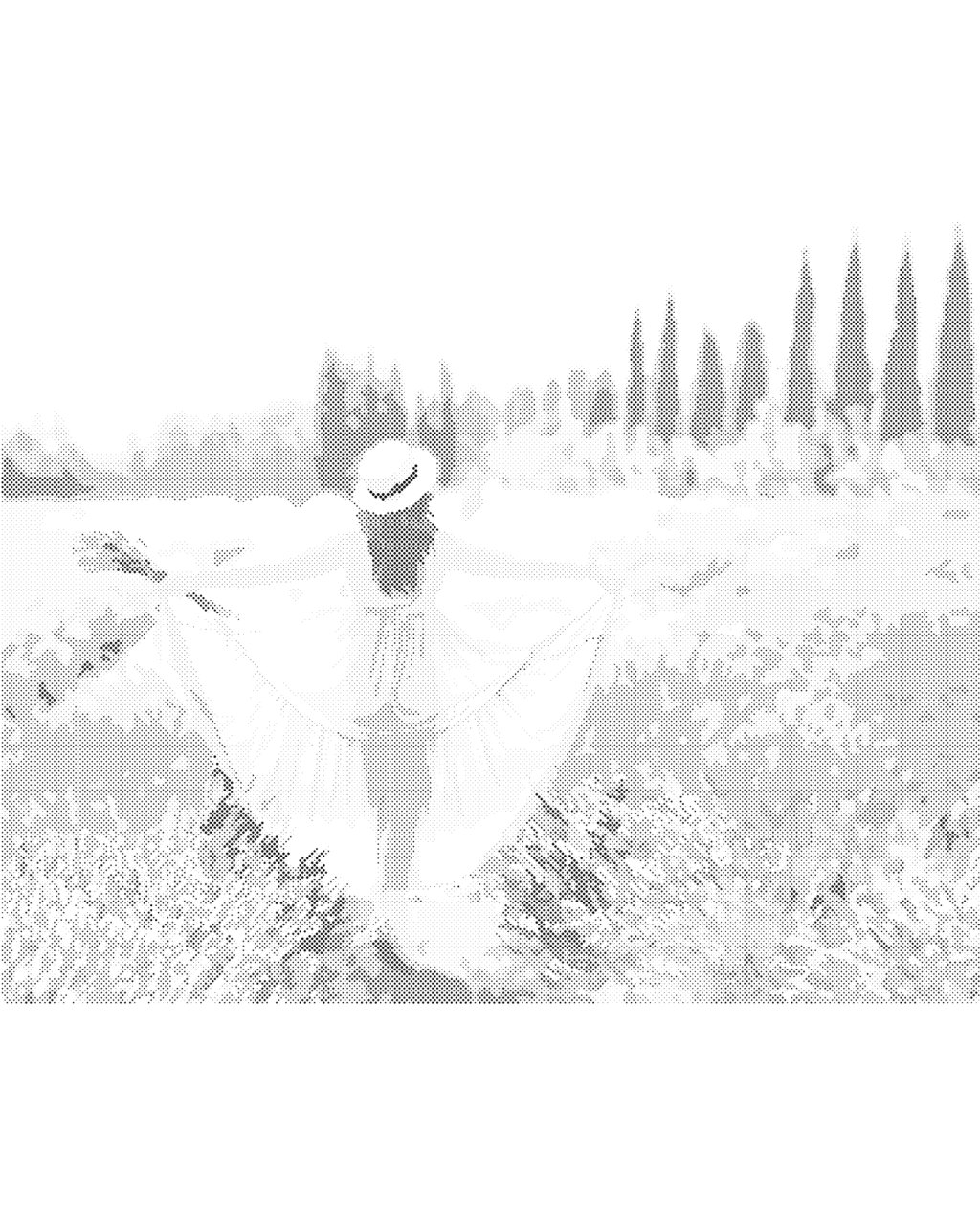 Bodkovanie - LEVANDUĽOVÉ POLE A ŽENA V MODRÝCH ŠATÁCH