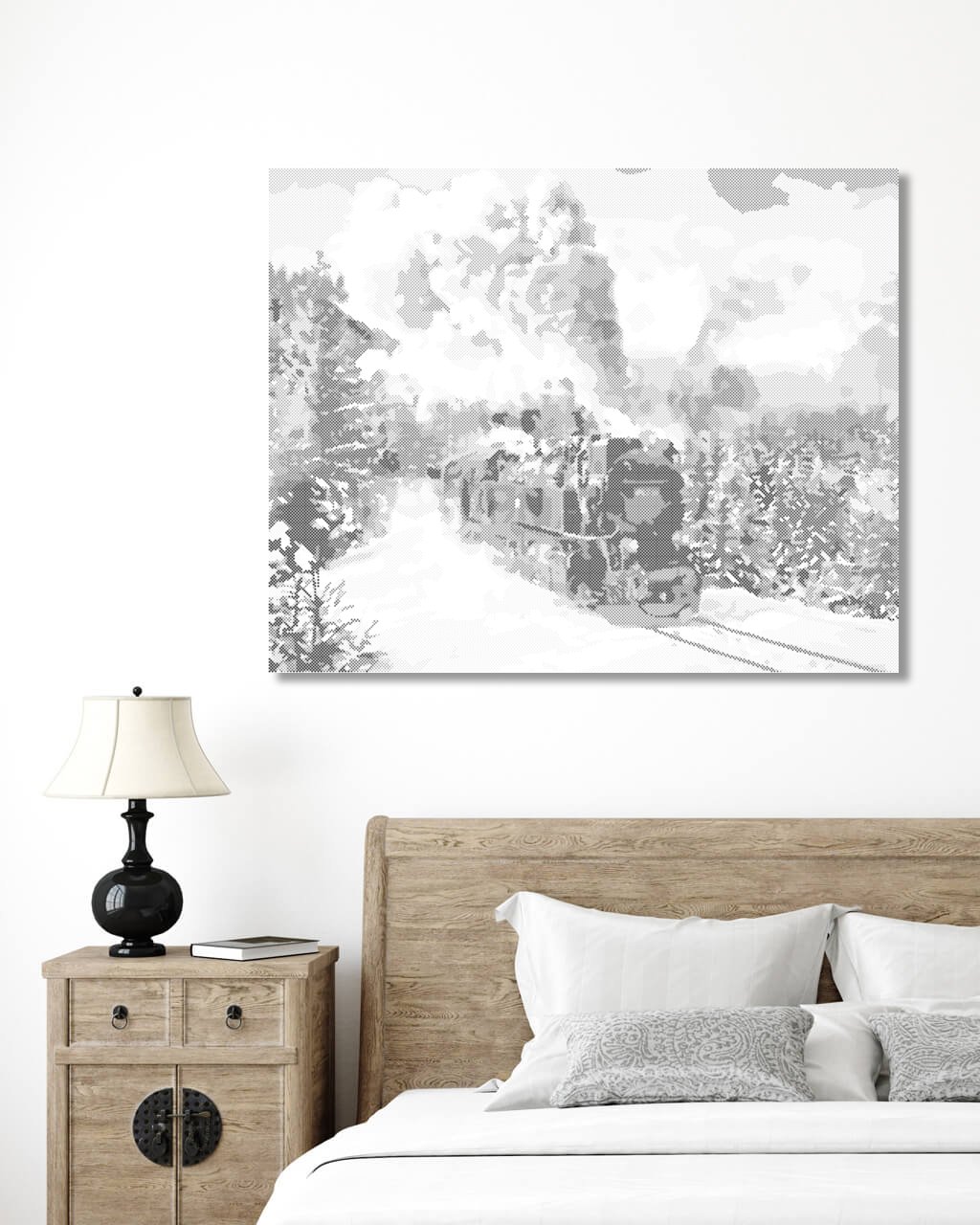 Bodkovanie - LOKOMOTÍVA V ZIMNEJ KRAJINE