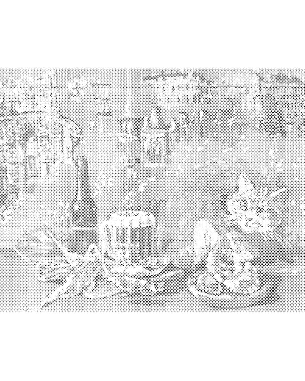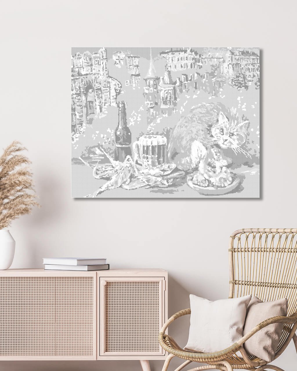 Bodkovanie - MAČKA S JEDLOM NA STOLE