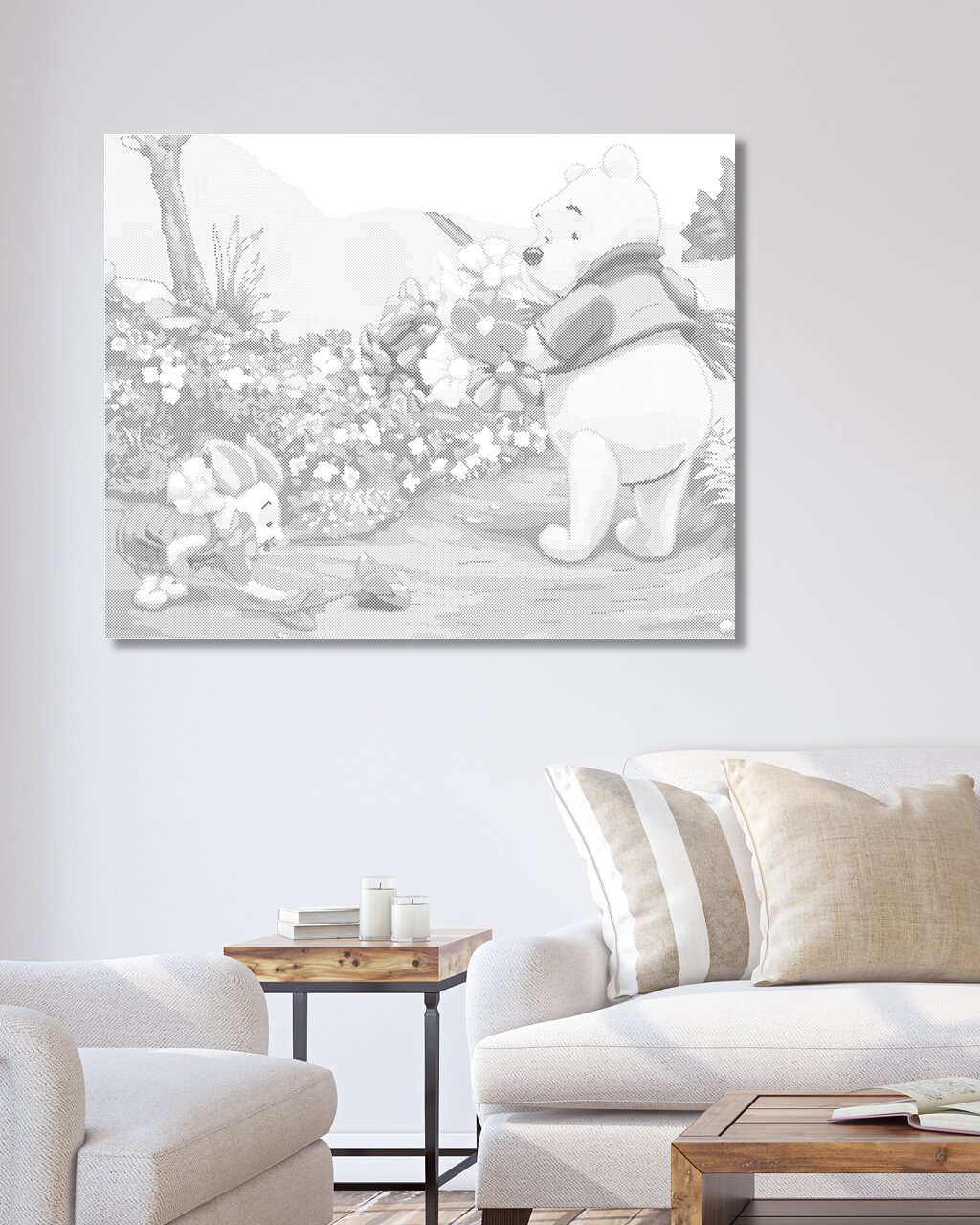 Bodkovanie - MACKO PU A PRASIATKO S KVETMI