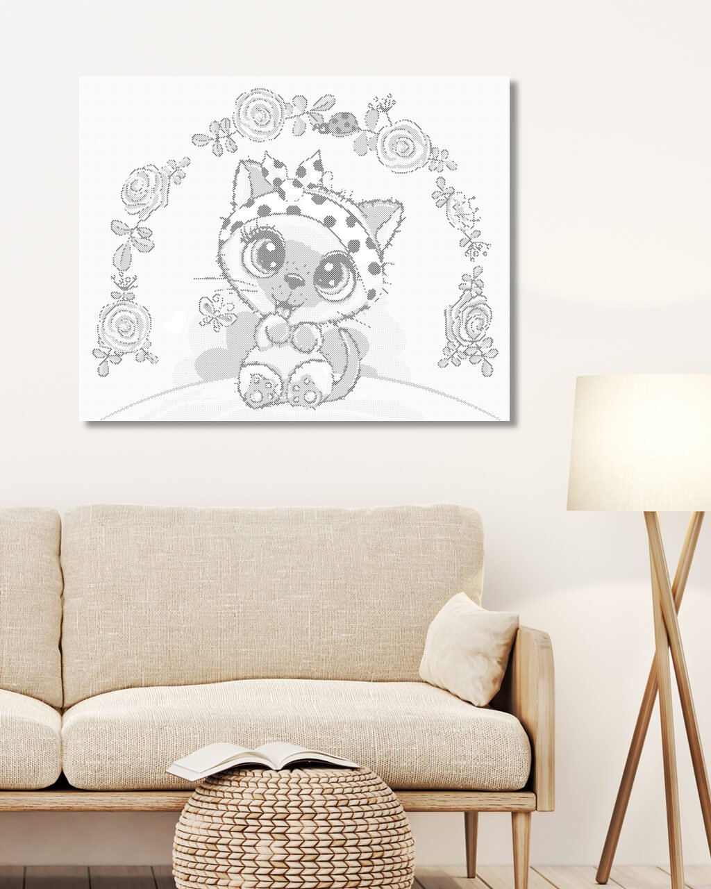 Bodkovanie - MALÁ MAČKA S KVETMI