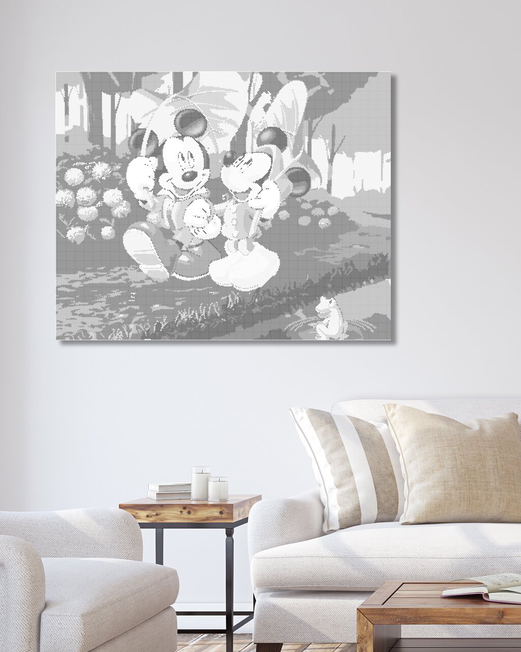 Bodkovanie - MICKEY MOUSE A MINNIE S DÁŽDNIKMI Z LISTOV