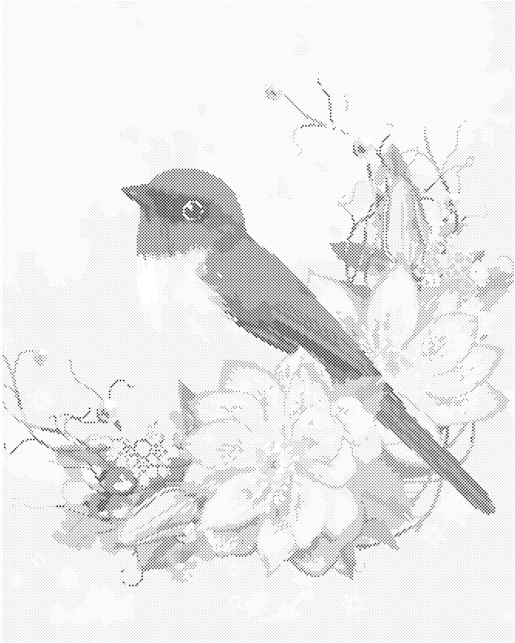 Bodkovanie - MODRÝ VTÁK A RUŽOVÉ KVETY