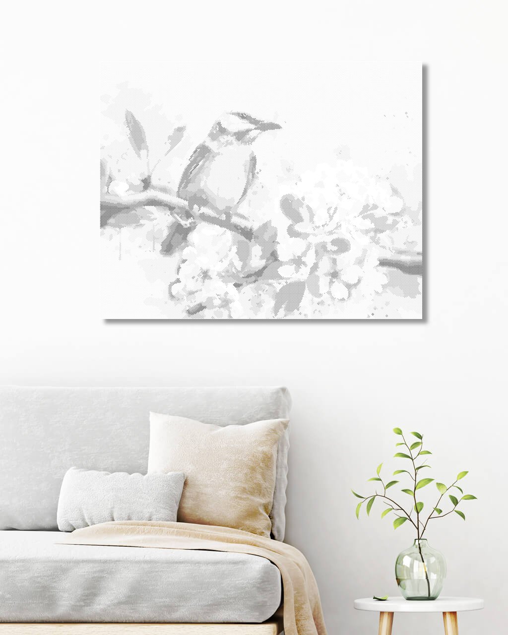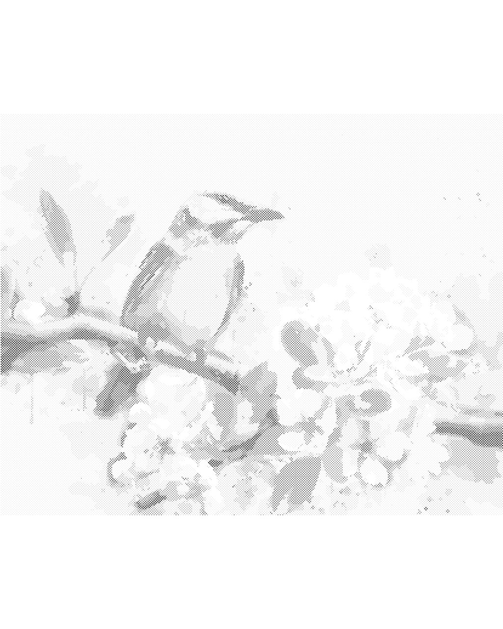 Bodkovanie - MODRÝ VTÁK NA ROZKVITNUTEJ ČEREŠNI