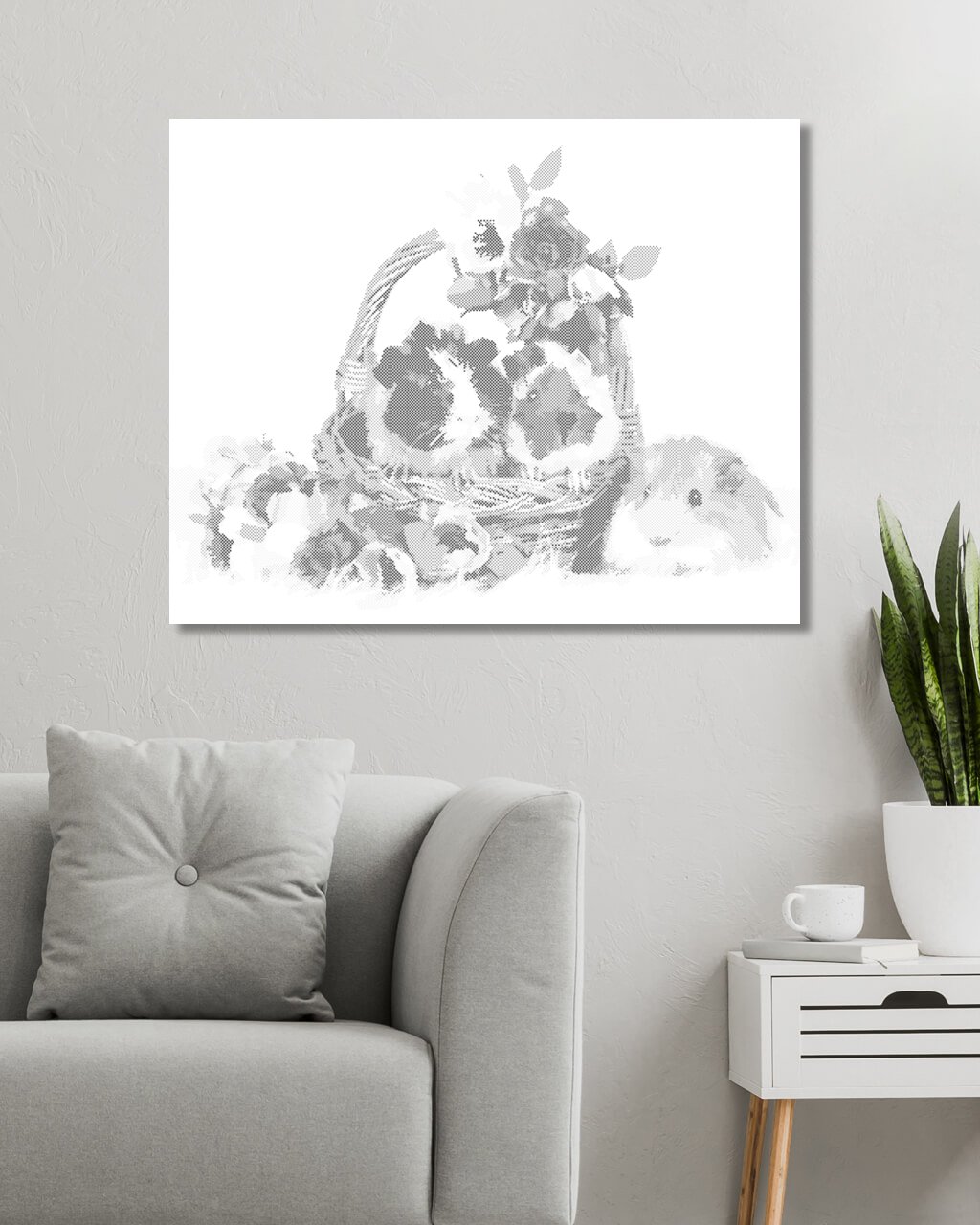 Bodkovanie - MORČATÁ V KOŠÍKU S KVETMI