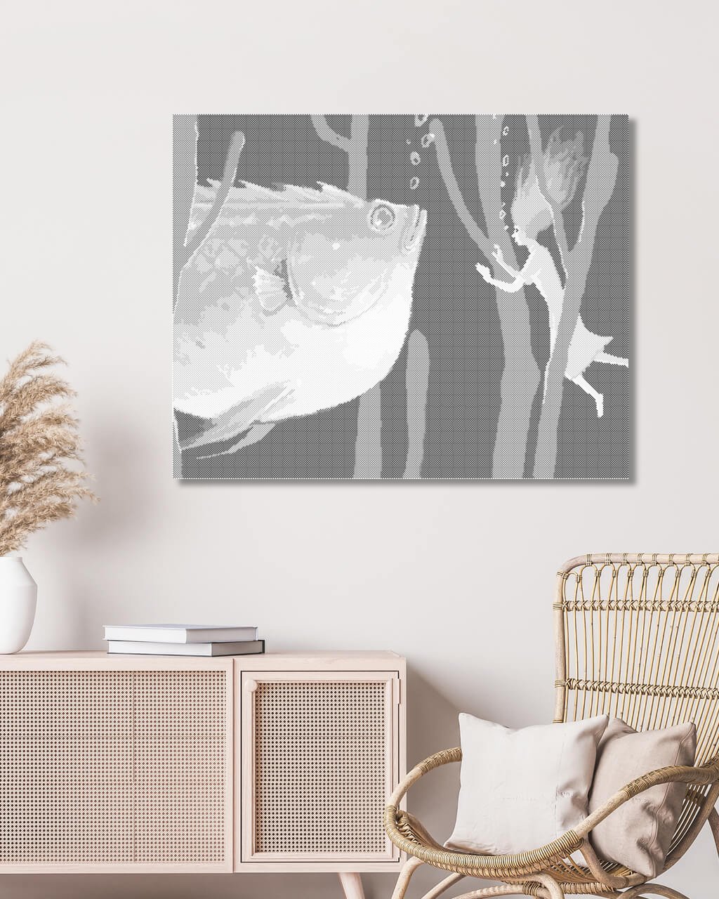 Bodkovanie - OBROVSKÁ ZELENÁ RYBA SO ŽENOU
