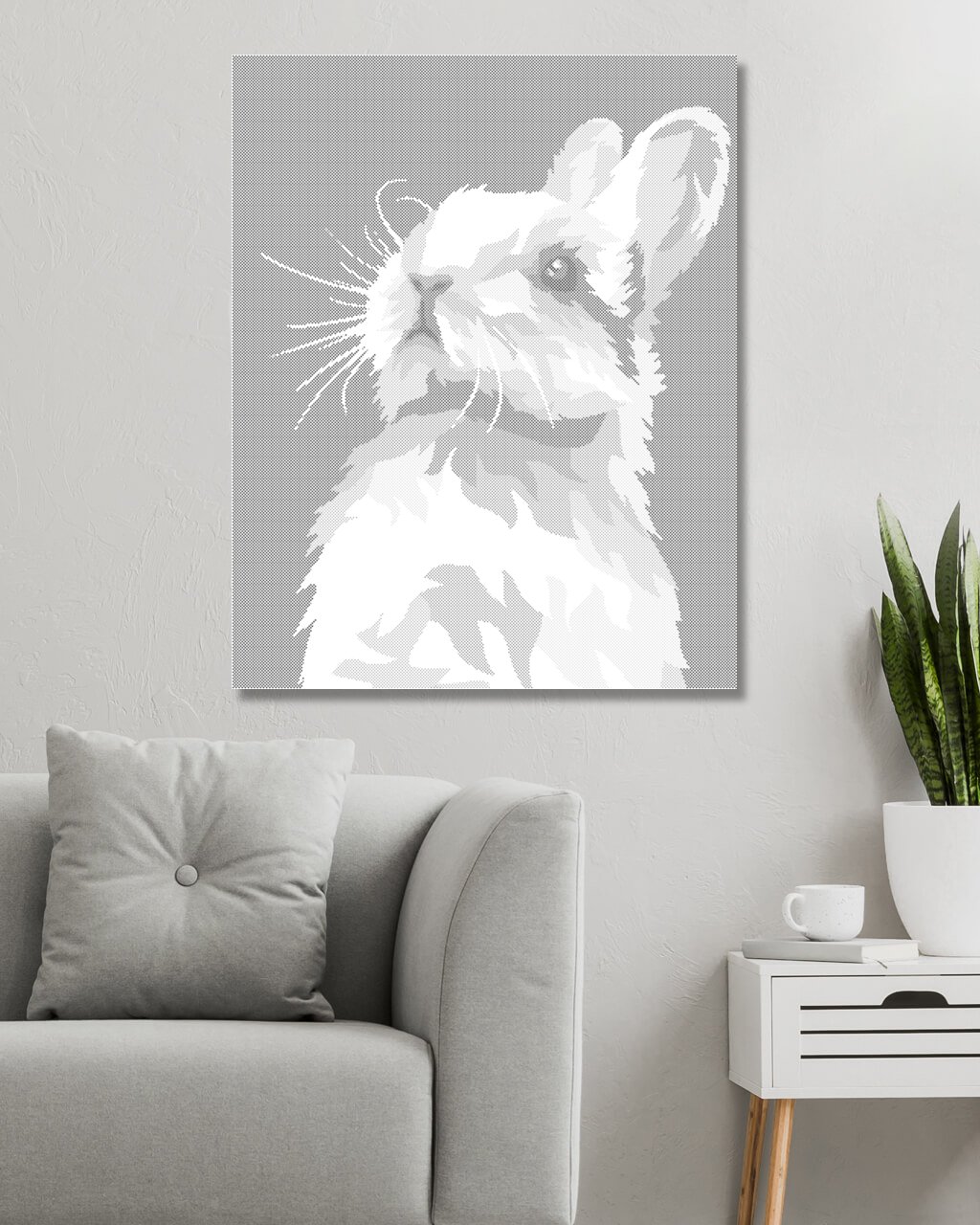 Bodkovanie - POP-ART KRÁLIK NA MODROM POZADÍ