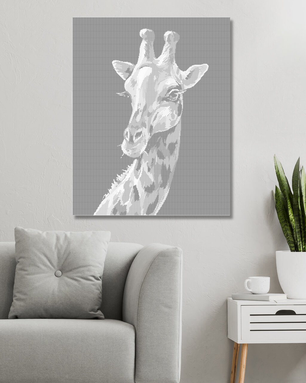 Bodkovanie - POP-ART ŽIRAFA NA FIALOVOM POZADÍ