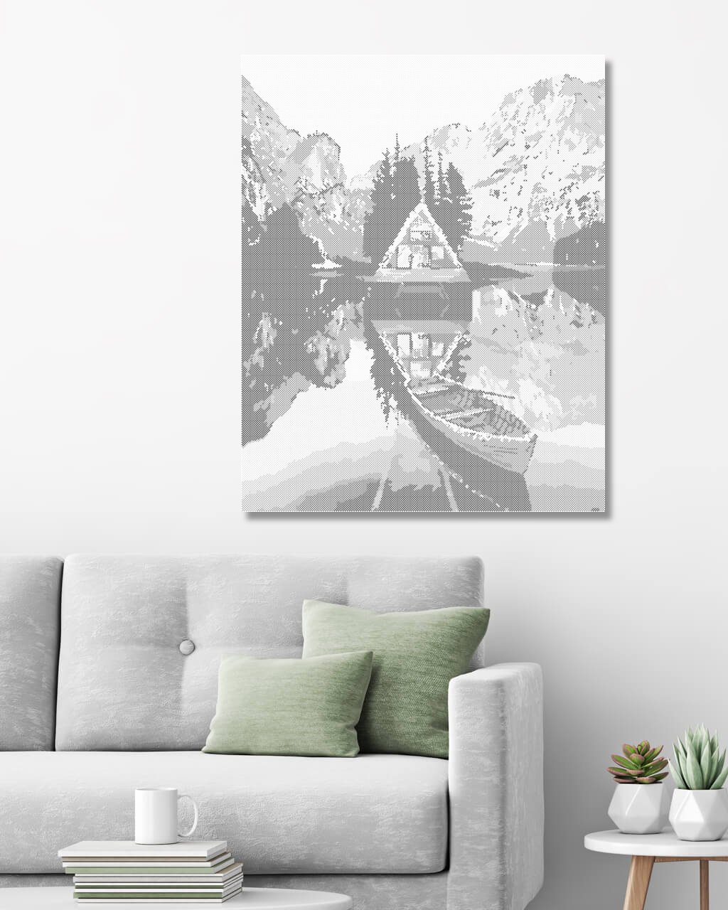 Bodkovanie - PRAMICA PRI CHATE NA JAZERE V HORÁCH