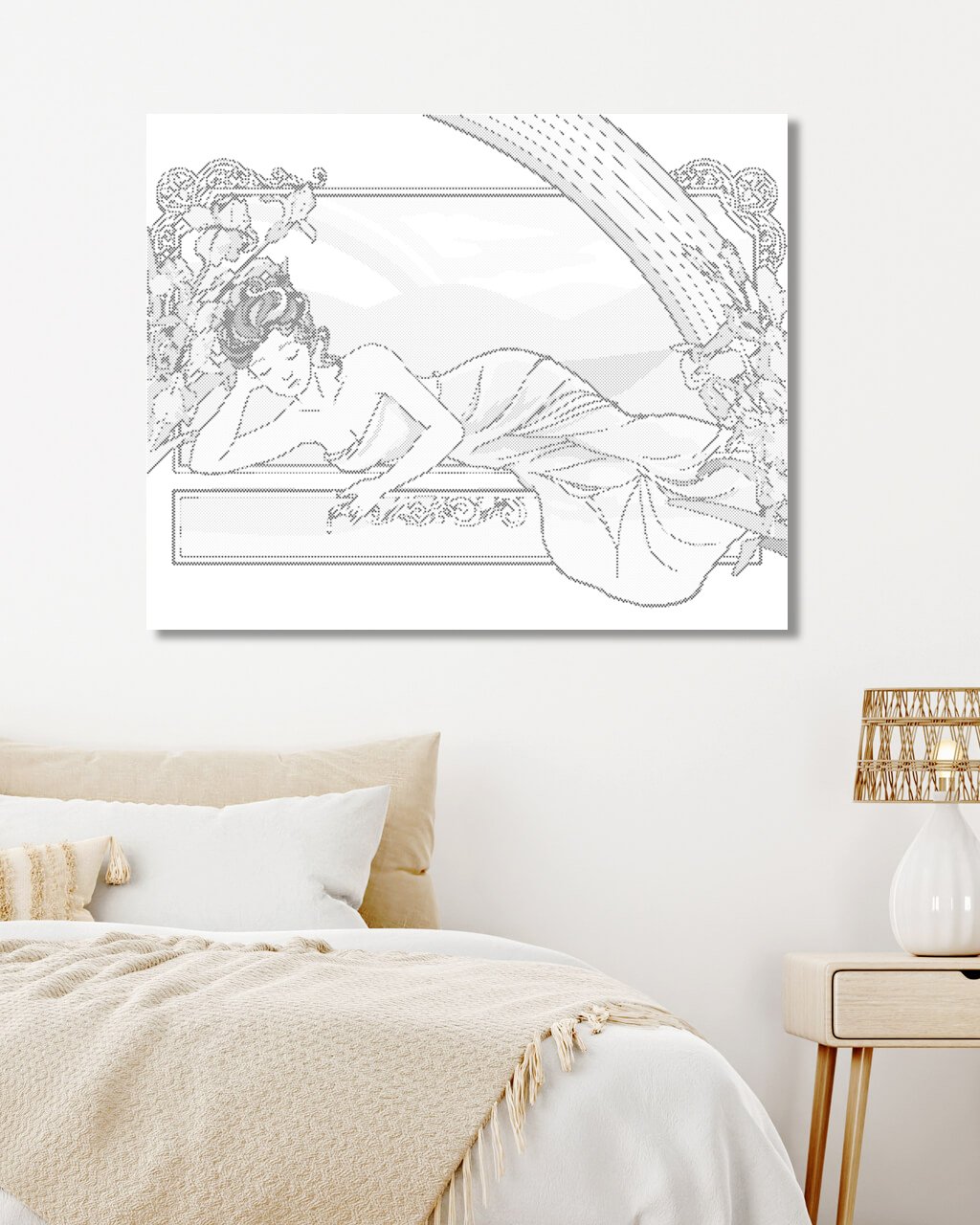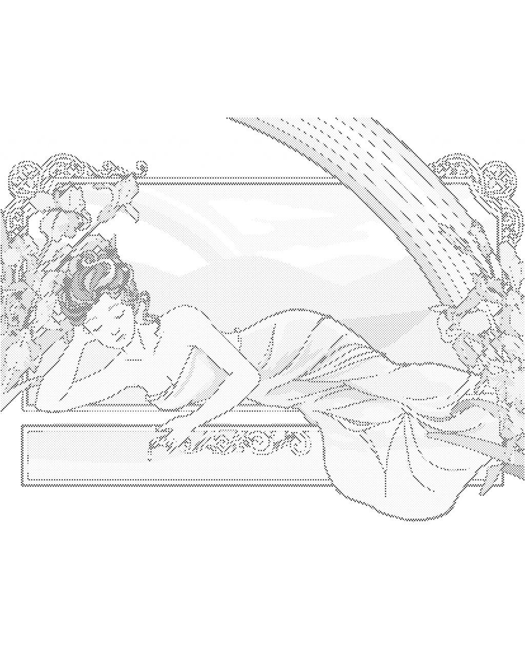 Bodkovanie - REPRODUKCIA ŽENA A FIALKY (ALFONS MUCHA)