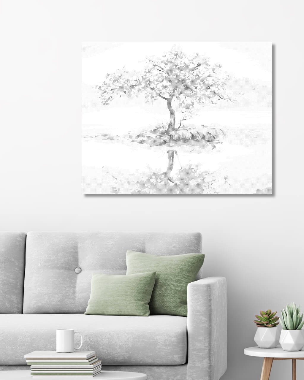 Bodkovanie - ROZKVITNUTÁ SAKURA PRI JAZERE