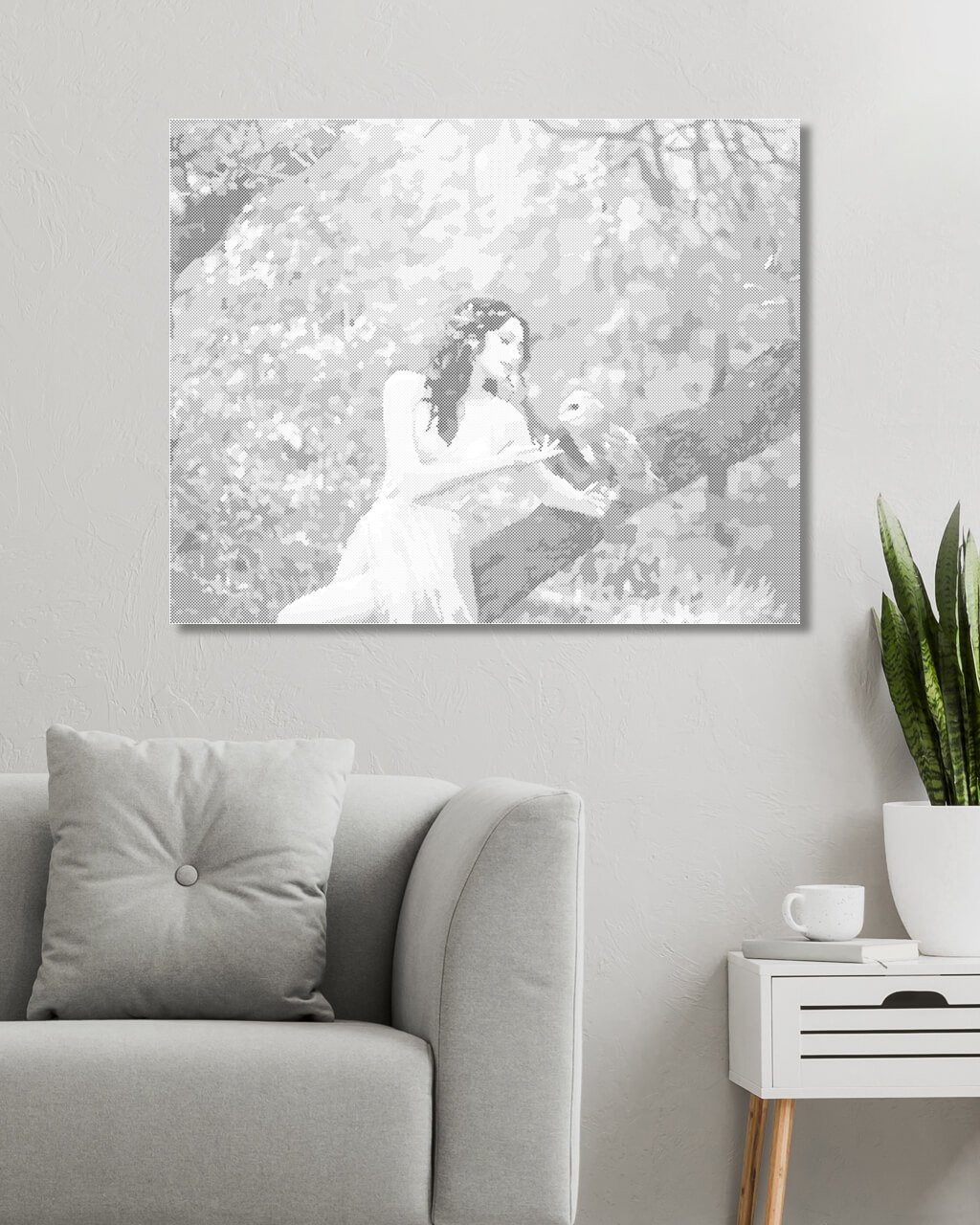 Bodkovanie - ROZPRÁVKOVÉ DIEVČA SO SOVOU V LESE