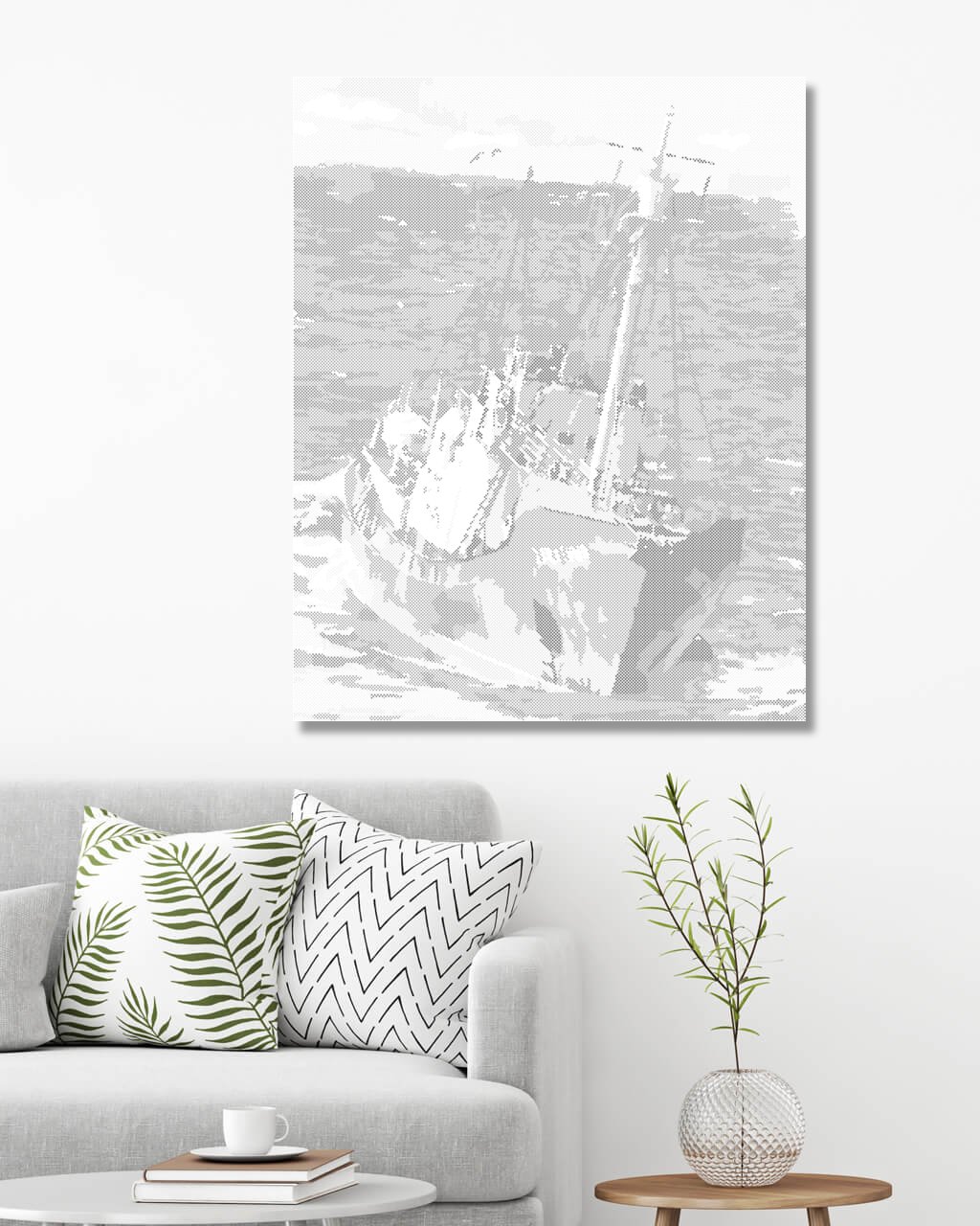 Bodkovanie - RYBÁRSKA LOĎ NA MORI