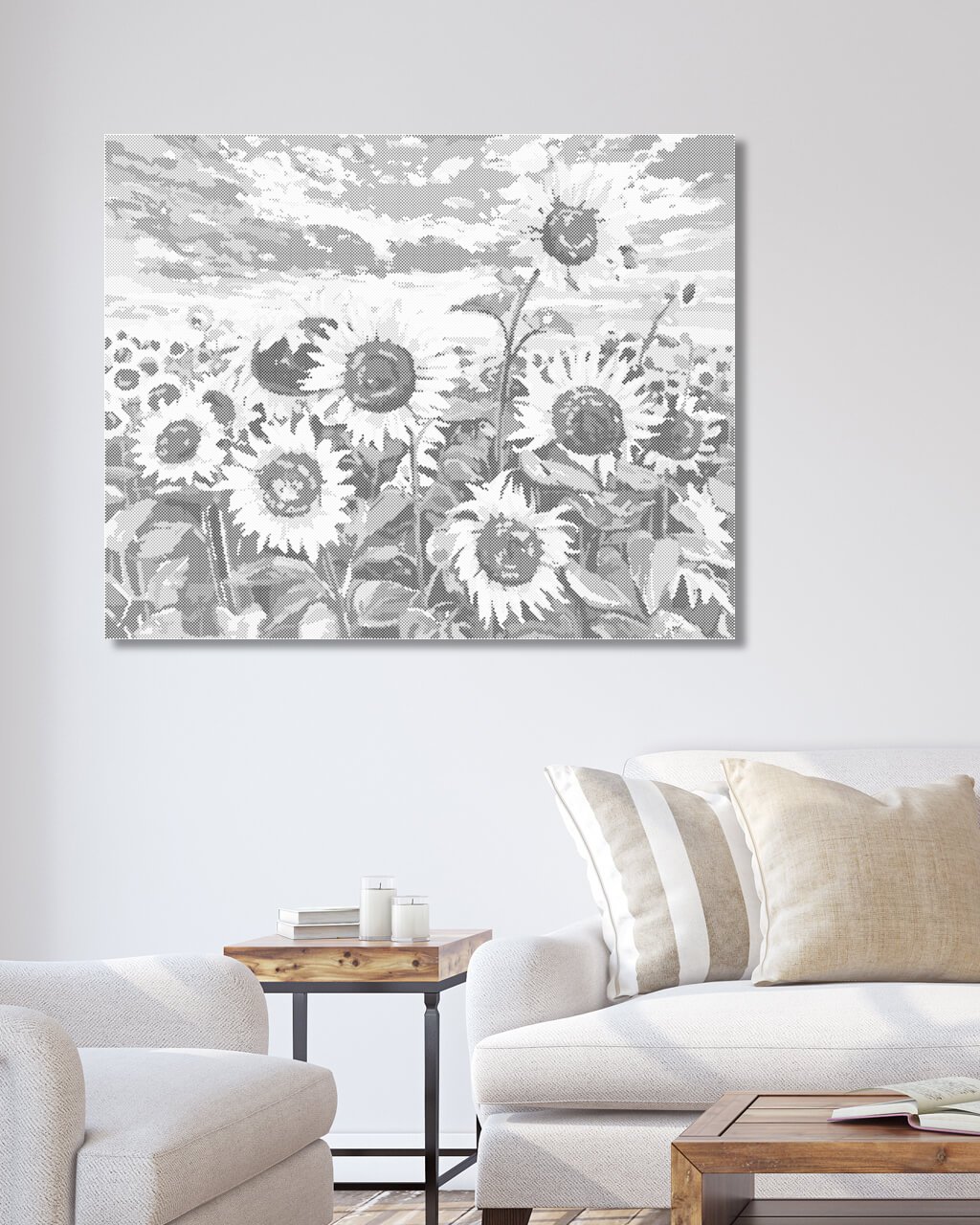 Bodkovanie - SLNEČNICE POD MODROU OBLOHOU