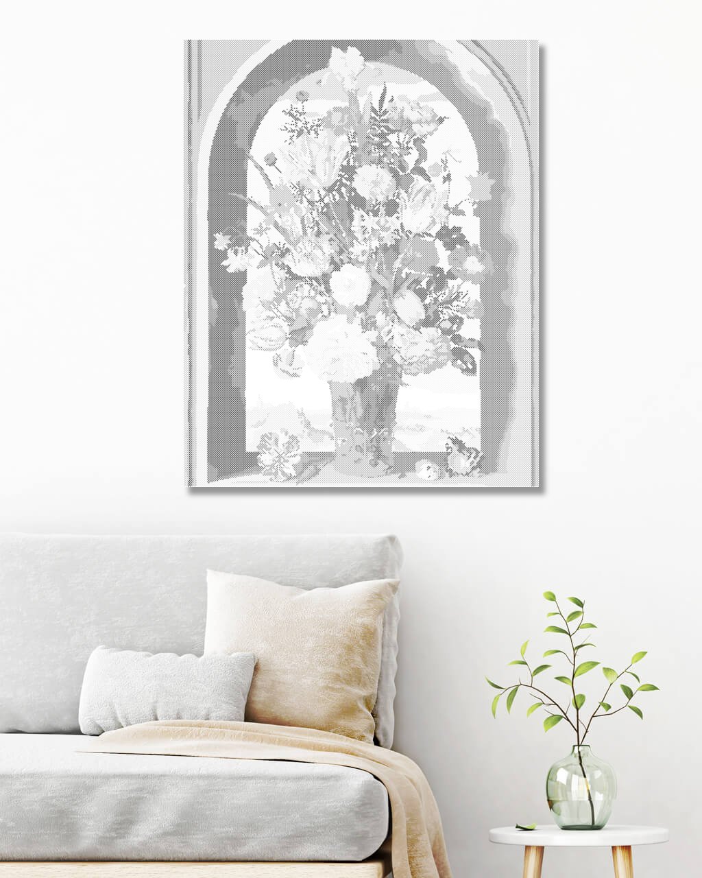Bodkovanie - VÁZA S KVETMI V OKENNOM VÝKLENKU (AMBROSIUS BOSSCHAERT)