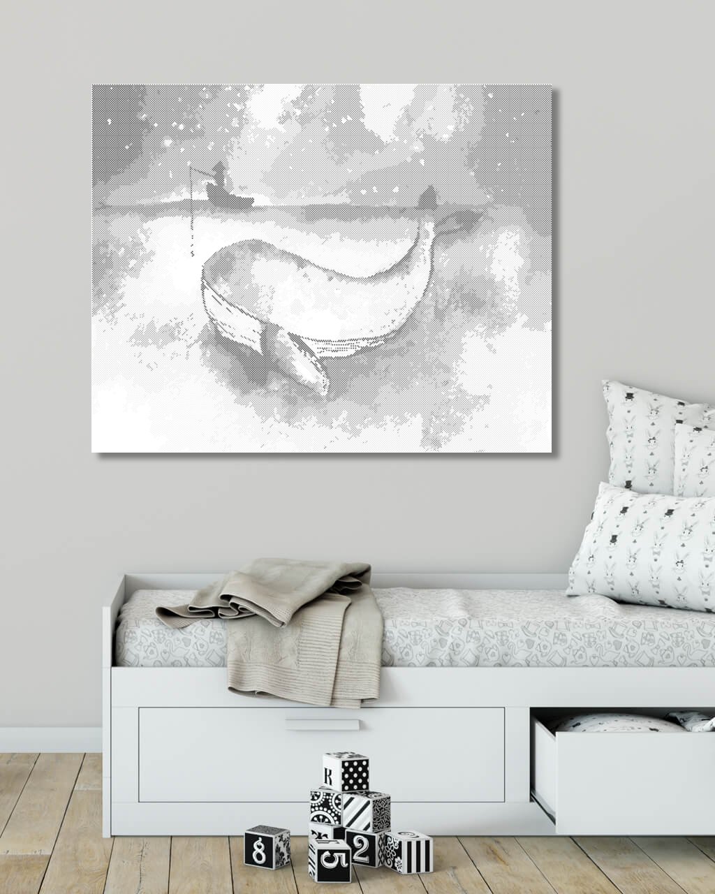 Bodkovanie - VEĽRYBA A RYBÁR NA LOĎKE
