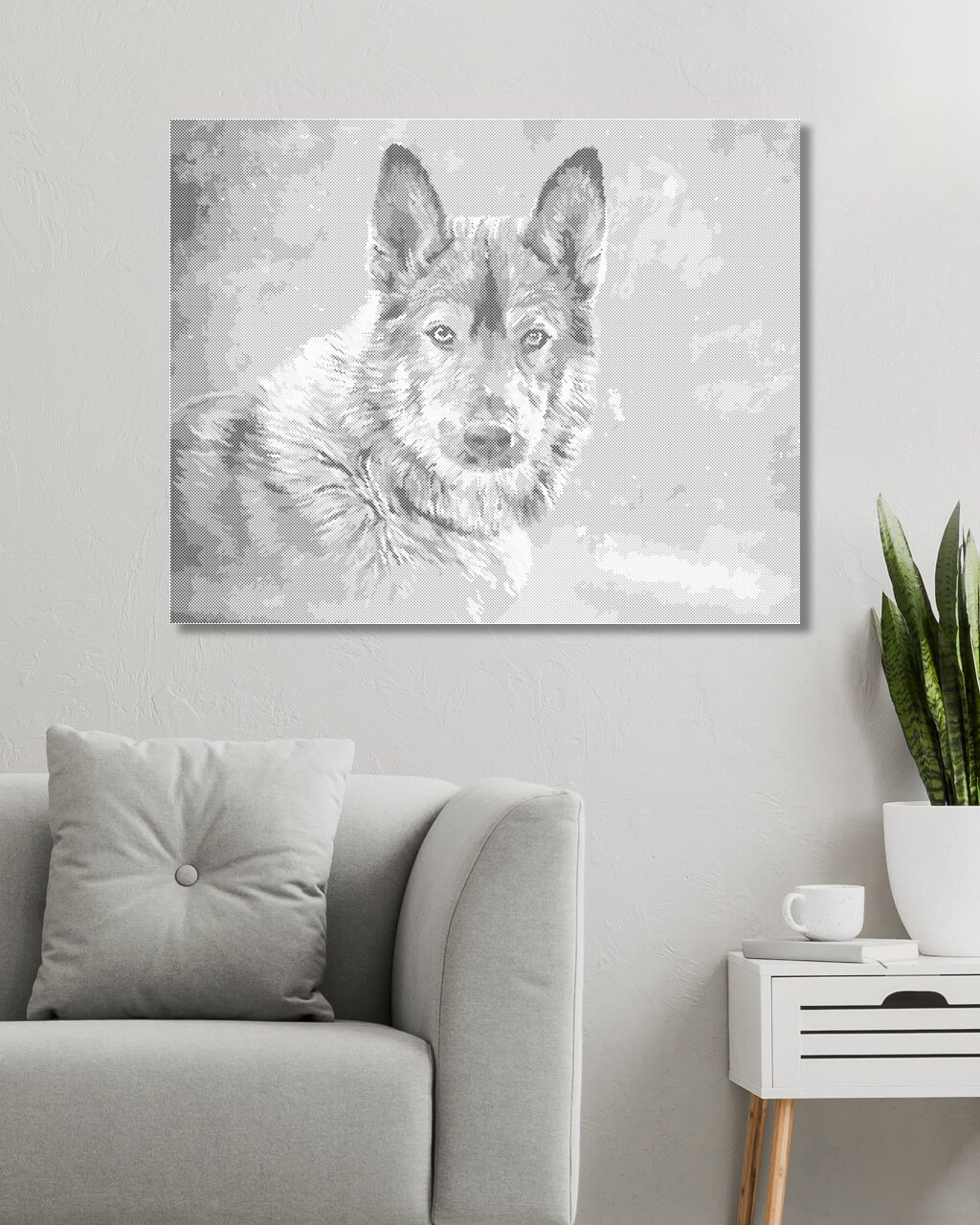 Bodkovanie - VLK NA SIVOM POZADÍ