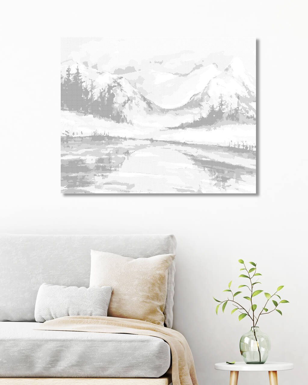 Bodkovanie - ZASNEŽENÉ HORY S JAZEROM
