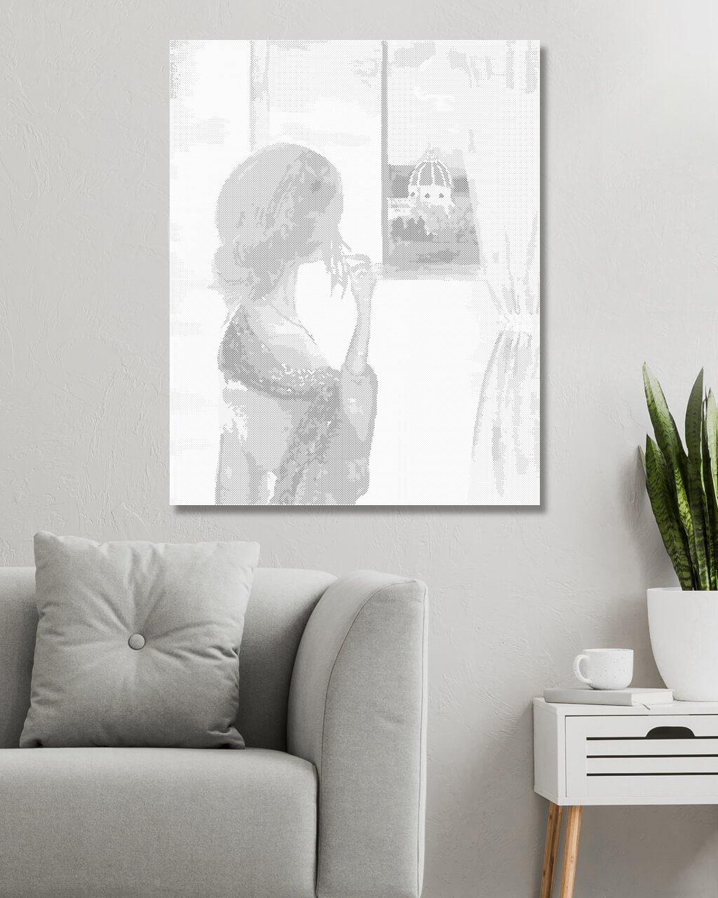 Bodkovanie - ŽENA PRI OKNE S VÝHĽADOM NA KATEDRÁLU SANTA MARIA