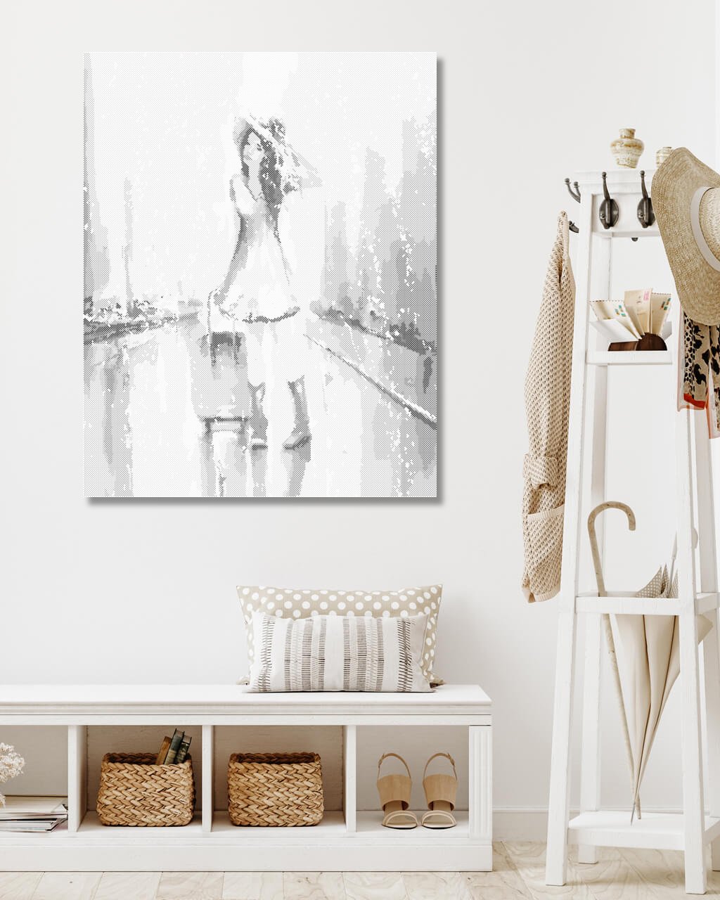 Bodkovanie - ŽENA S KUFROM V DAŽDI