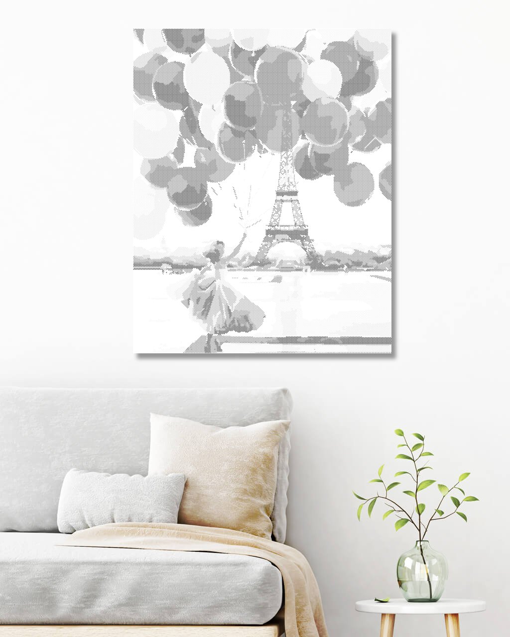 Bodkovanie - ŽENA S MNOHÝMI BALÓNMI PRI EIFFELOVKE