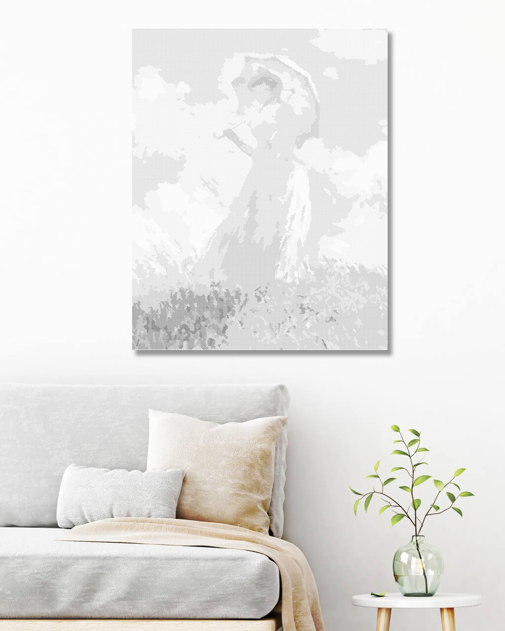 Bodkovanie - ŽENA SO SLNEČNÍKOM OTOČENÁ VĽAVO (CLAUDE MONET)