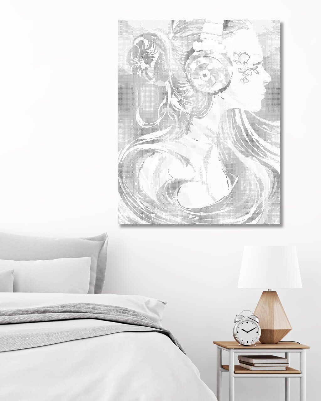 Bodkovanie - ŽENA SO SLÚCHADLAMI V OPOJENÍ HUDBY