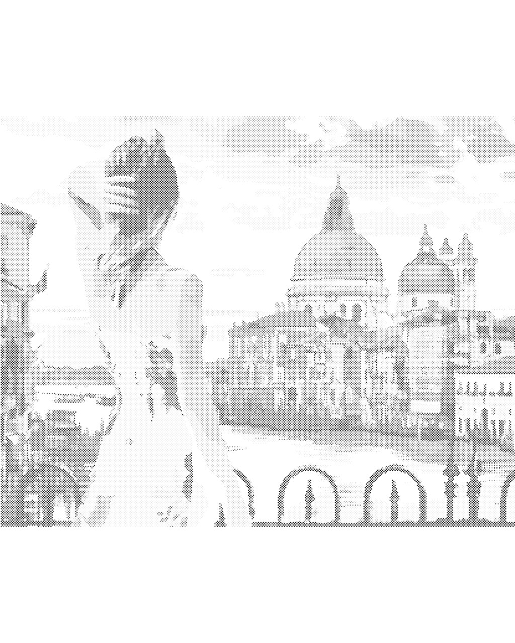 Bodkovanie - ŽENA V BENÁTKACH PRI ZÁPADE SLNKA